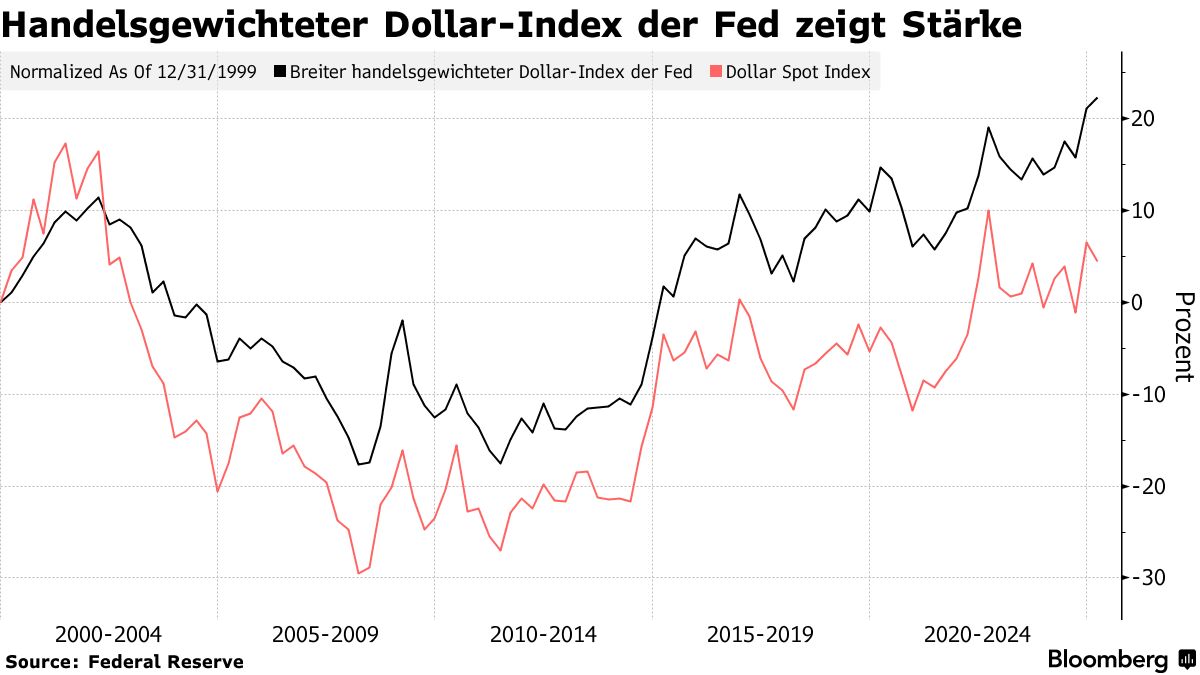 一方面,美國可能尋求貿易加權美元走弱(衡量美元相對於其貿易伙伴貨幣價值的指標)以減少貿易逆差。但與此同時,像彭博美元現貨指數這樣的美元晴雨表可能會逐步走強。自特朗普11月勝選以來,這項衡量美元兑其他貨幣價值的基準指數已上漲2.3%。