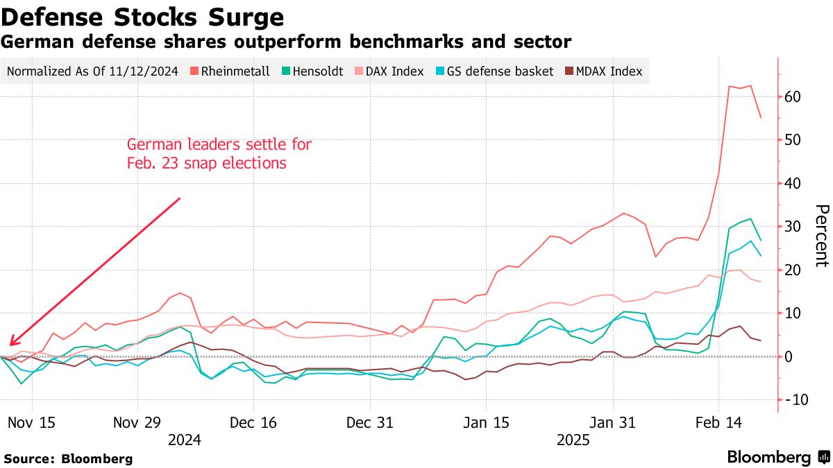 歐洲軍工股2025年開局驚豔,市場普遍預期德國對地區軍備建設的資金支持將在多數情況下延續。投資者當前正試圖研判不同執政聯盟將如何具體影響軍費開支規模。