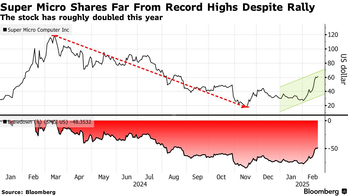 攝影師:Yuki Iwamura/彭博社超微電腦公司股價今年已飆升逾90%,其下一輪漲勢的關鍵在於能否在主板交易所保持交易資格。這家總部位於加州聖何塞的企業須在2月25日前補交所有未披露的財務報告以符合納斯達克上市要求。迫近的最後期限始終是壓制股價的陰雲。