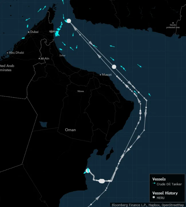 Meru號隨後駛向阿曼沿海的杜庫姆港,船舶信號顯示其於週四抵達該地。