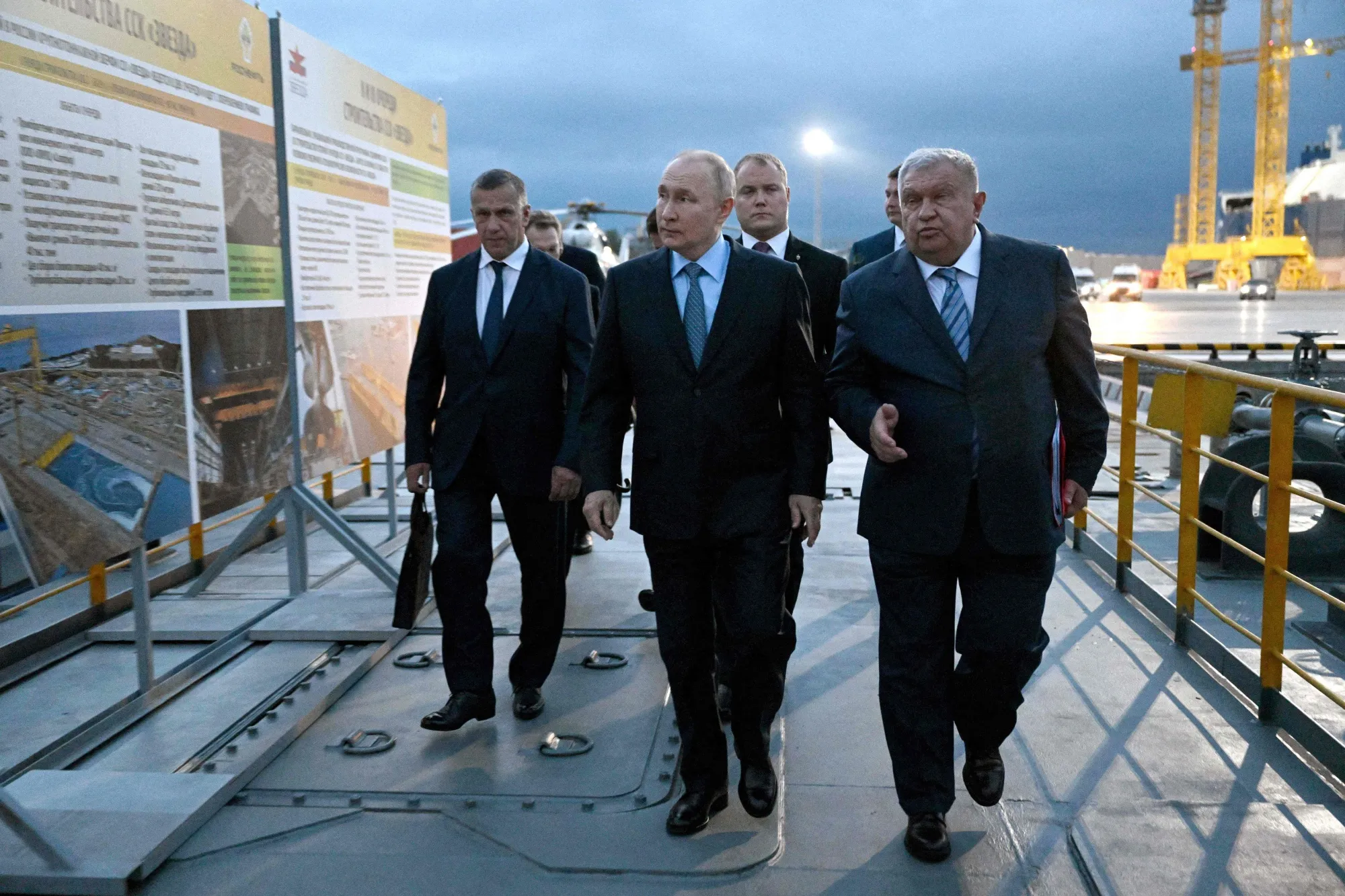俄羅斯國家通訊社斯普特尼克發佈的照片顯示,2023年,弗拉基米爾·普京在濱海邊疆區紅星造船廠出席北極天然氣運輸油輪命名儀式,陪同出席的有俄羅斯石油公司首席執行官伊戈爾·謝欽。照片:帕維爾·別德尼亞科夫/法新社/蓋蒂圖片社據克里姆林宮相關人士透露,俄羅斯歡迎美國將部分銀行從黑名單中移除,以幫助企業克服跨境商品支付困難並以美元進行交易,同時解除對近200艘運輸俄羅斯石油的油輪的制裁將有助於能源銷售。