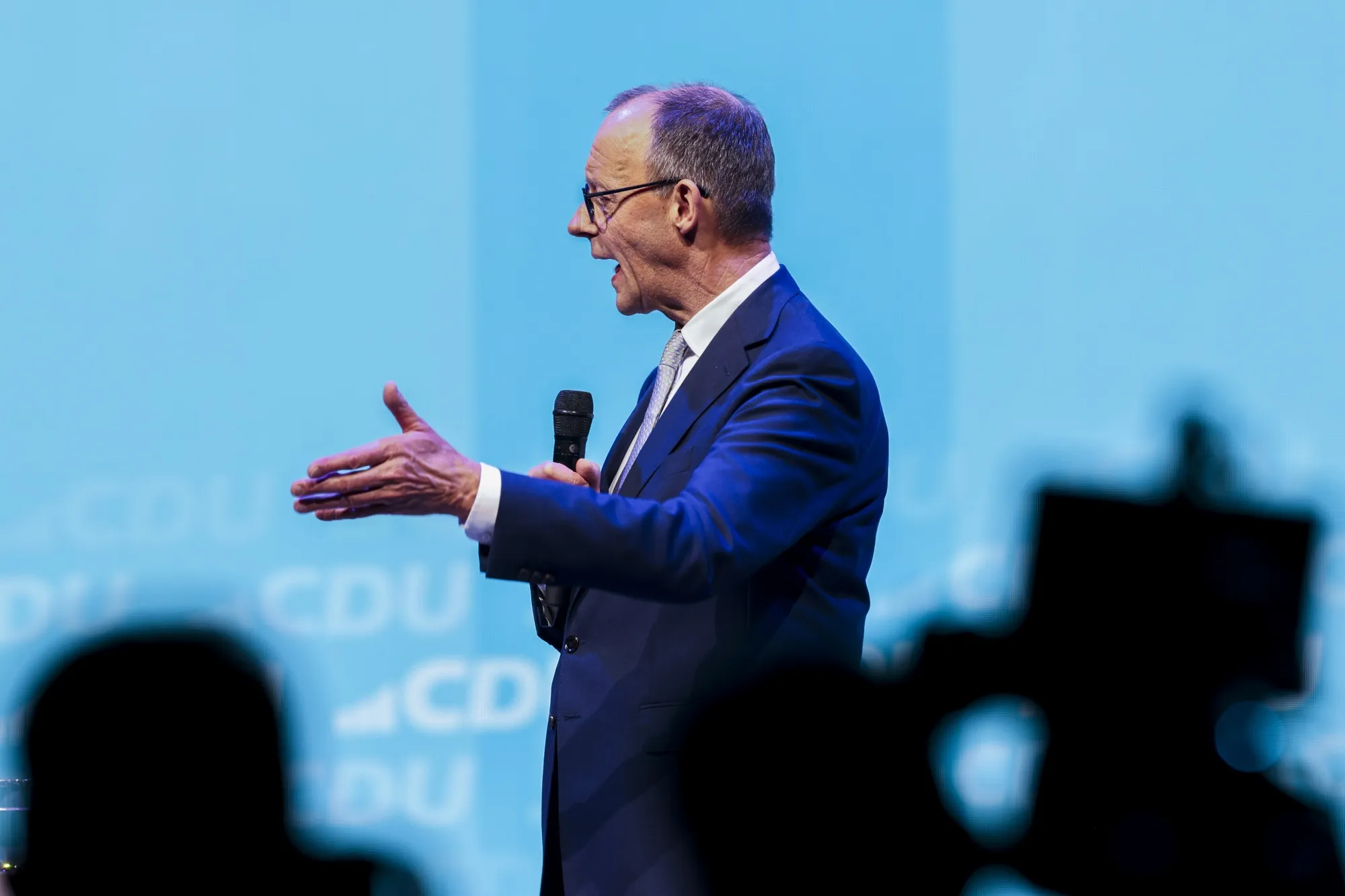 2月21日,弗里德里希·默茨在北萊茵-威斯特法倫州發表講話。攝影師:克里斯托夫·賴希温/dpa/美聯社照片