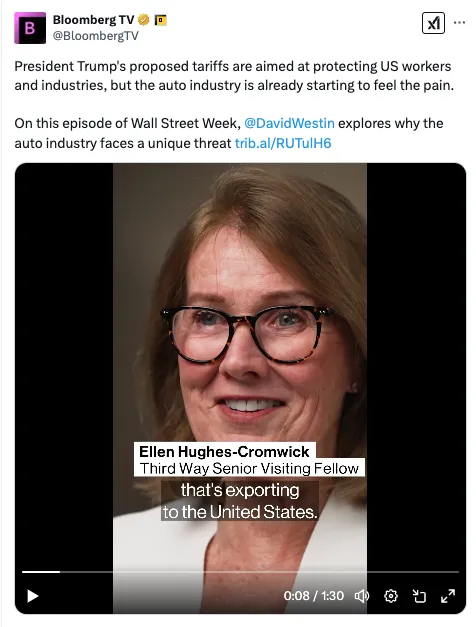 攝影師:Kyle Grillot/Bloomberg 歡迎閲讀《華爾街週報》時事通訊,我們將通過彭博電視與全球華爾街頂尖智囊的對話,為您提供投資思考素材。我是大衞·韋斯汀,本週我們探討了特朗普新關税政策對汽車行業的影響,以及實現人工智能預期目標必須跨越的障礙。若您尚未訂閲,請點擊此處註冊本通訊。