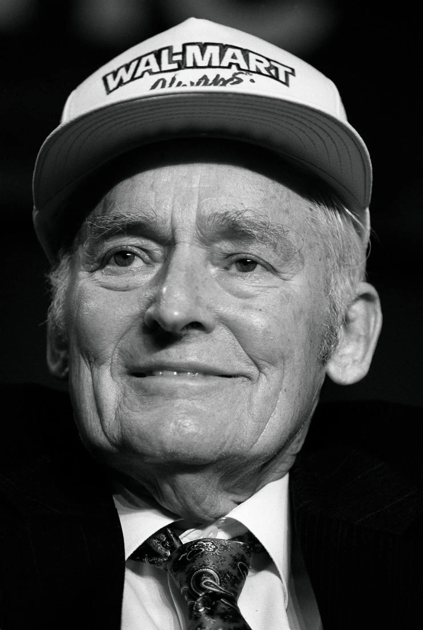 沃爾頓於1962年創立公司,最終超越凱馬特和西爾斯成為美國最大零售商。這位商界鉅子可以冷酷無情——在他看來,夫妻店倒閉只能説明經營不善。1992年去世前,他已成為民間傳奇:作為全美最富有的人之一,仍駕駛着滿是凹痕的福特皮卡穿梭在小鎮街頭,辦公室裏常備獵槍以便隨時出發打鵪鶉。儘管晚年居住在由弗蘭克·勞埃德·賴特門徒設計的現代豪宅裏,但這絲毫不影響他作為山姆的瀟灑人生。