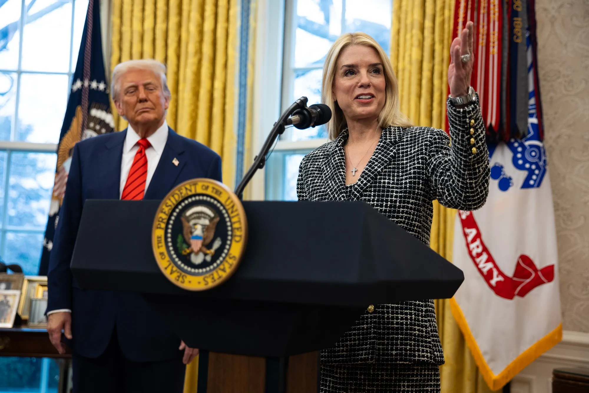 2月5日,帕姆·邦迪與特朗普在華盛頓特區白宮橢圓形辦公室。攝影師:弗朗西斯·鍾/政客網/彭博社他們也在思考,特朗普是否會通過停止對美國公司的調查——甚至針對其外國競爭對手——來輸出他的“美國優先”議程。