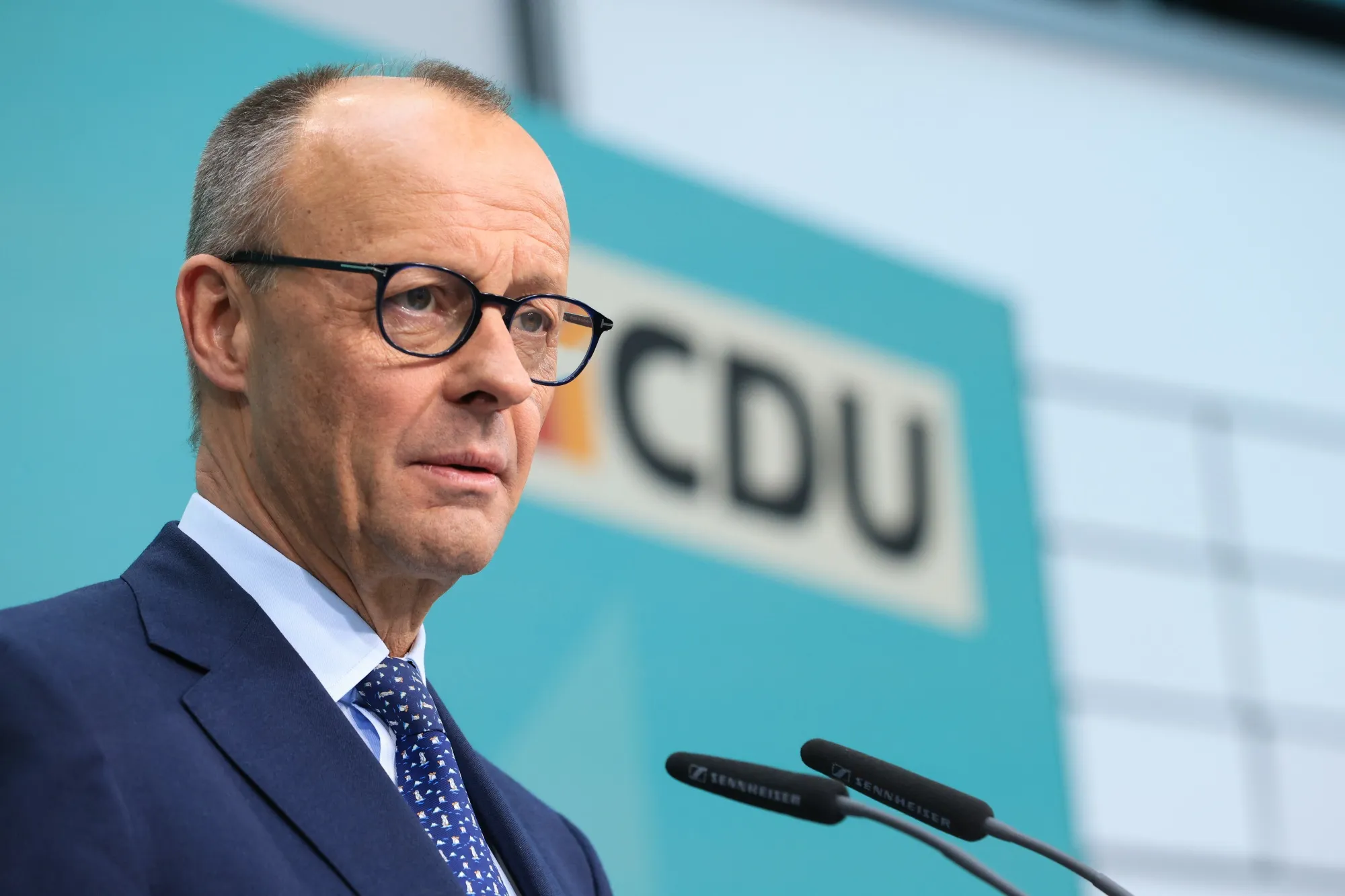 弗里德里希·梅爾茨於2月24日在柏林新聞發佈會期間。