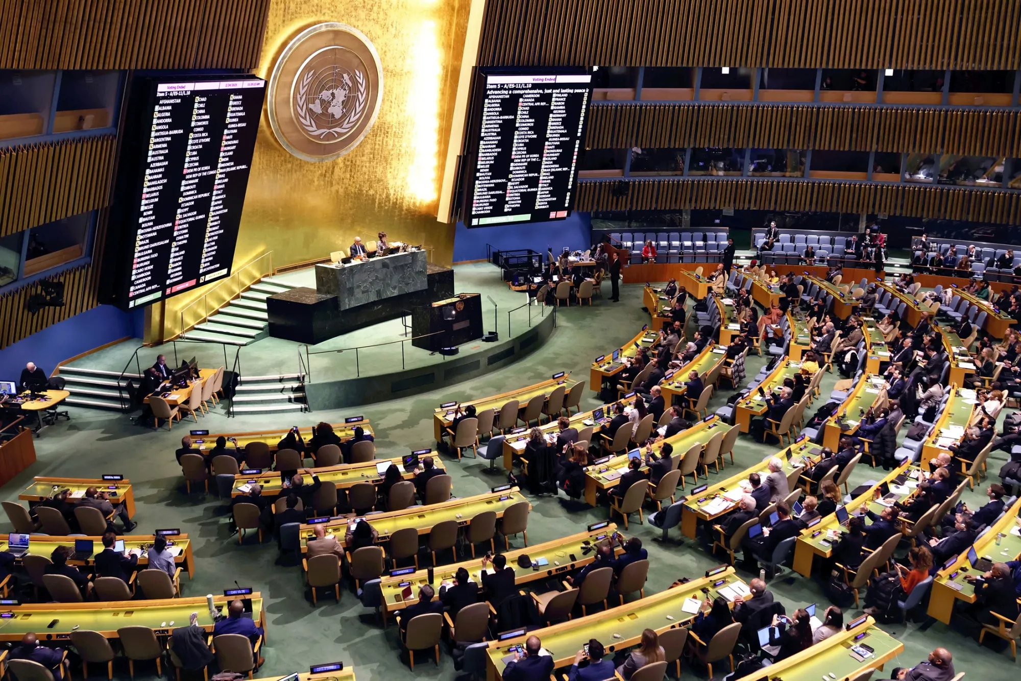 2月24日聯合國大會上,美國和俄羅斯對一項歐洲支持的烏克蘭問題決議投下反對票。