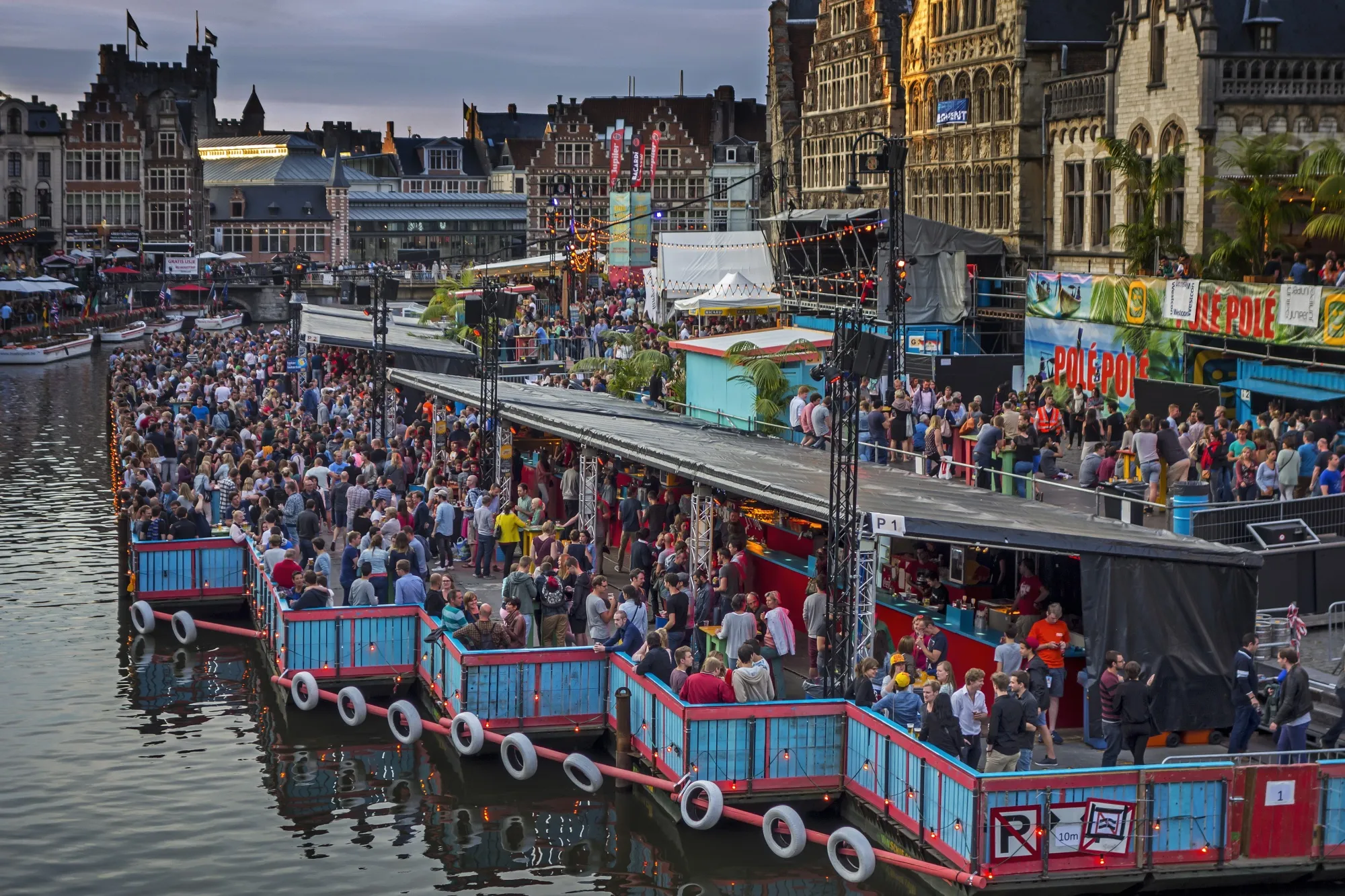 遊客擠滿根特節慶活動的看台。圖片來源:Arterra/環球影像集團新聞社### 更多彭博資訊