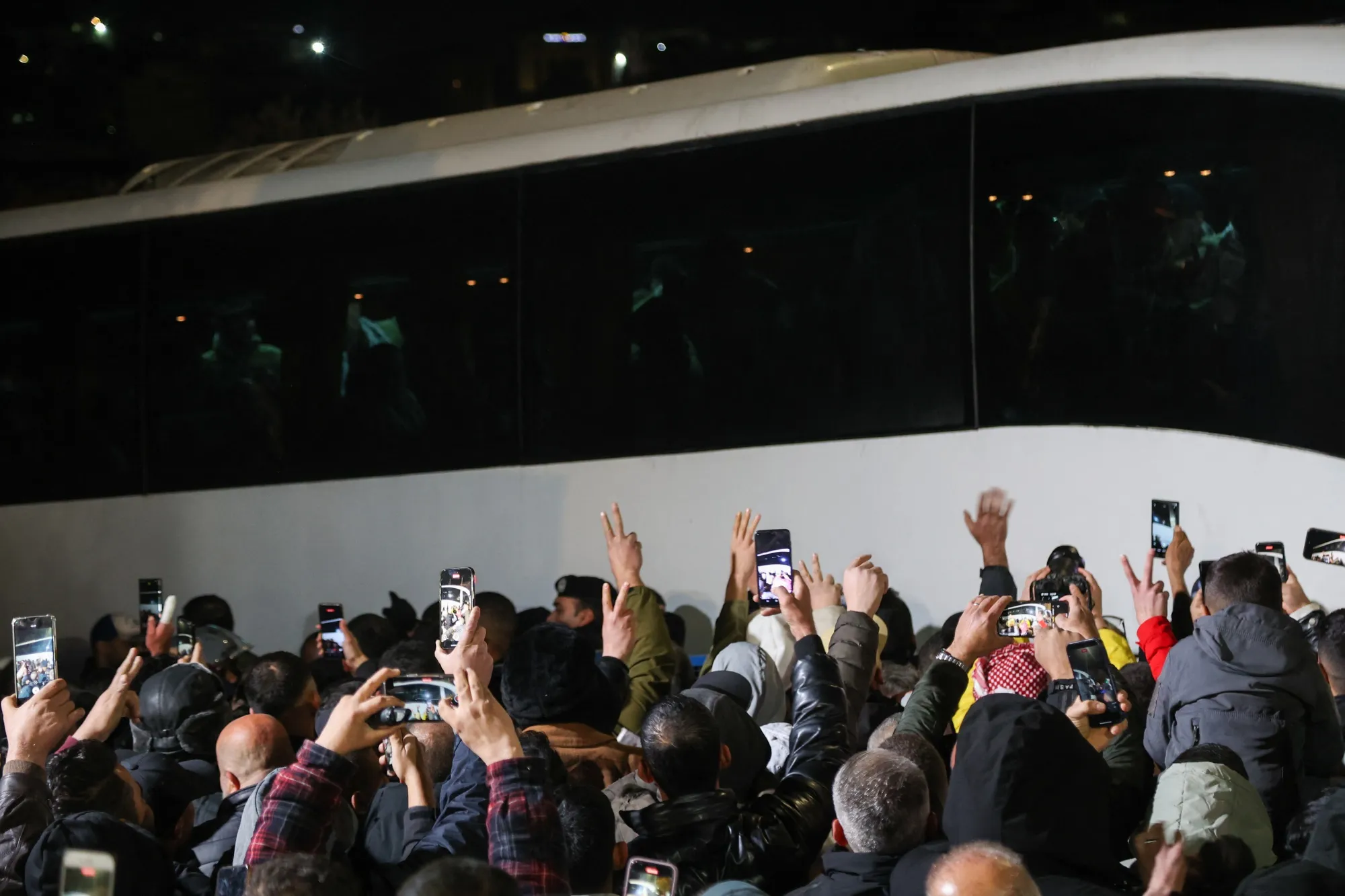 2月26日,一輛載有以色列釋放的巴勒斯坦囚犯的巴士駛過約旦河西岸拉姆安拉。攝影師:穆罕默德·納扎爾/法新社/蓋蒂圖片社本週末到期的停火協議前景仍不明朗。關於進入第二階段以規劃戰爭結束的談判尚未達成協議,雙方最終目標存在巨大分歧。
