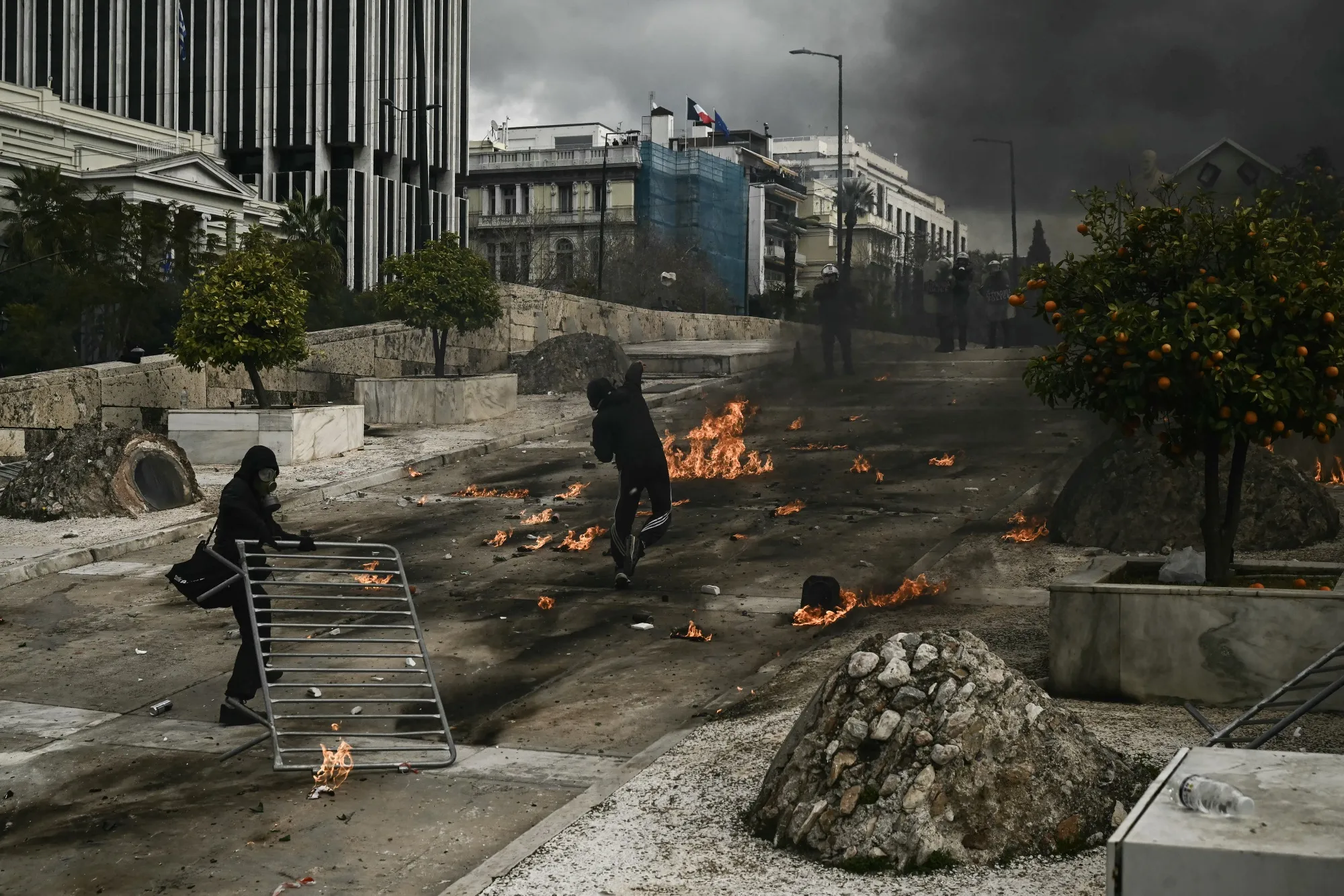 雅典市中心爆發衝突,集會結束時蒙面人羣點燃垃圾桶,並向議會大廈外圍的防暴警察投擲石塊和燃燒瓶。警方以催淚瓦斯還擊。