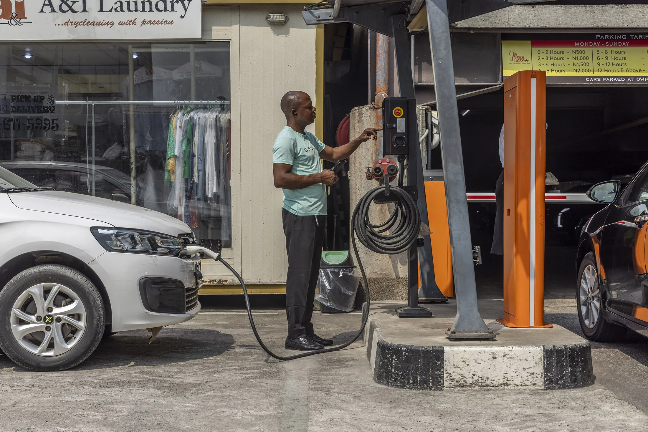 拉各斯幾個Saglev電動汽車充電點之一。攝影師:安德魯·埃西博/彭博社