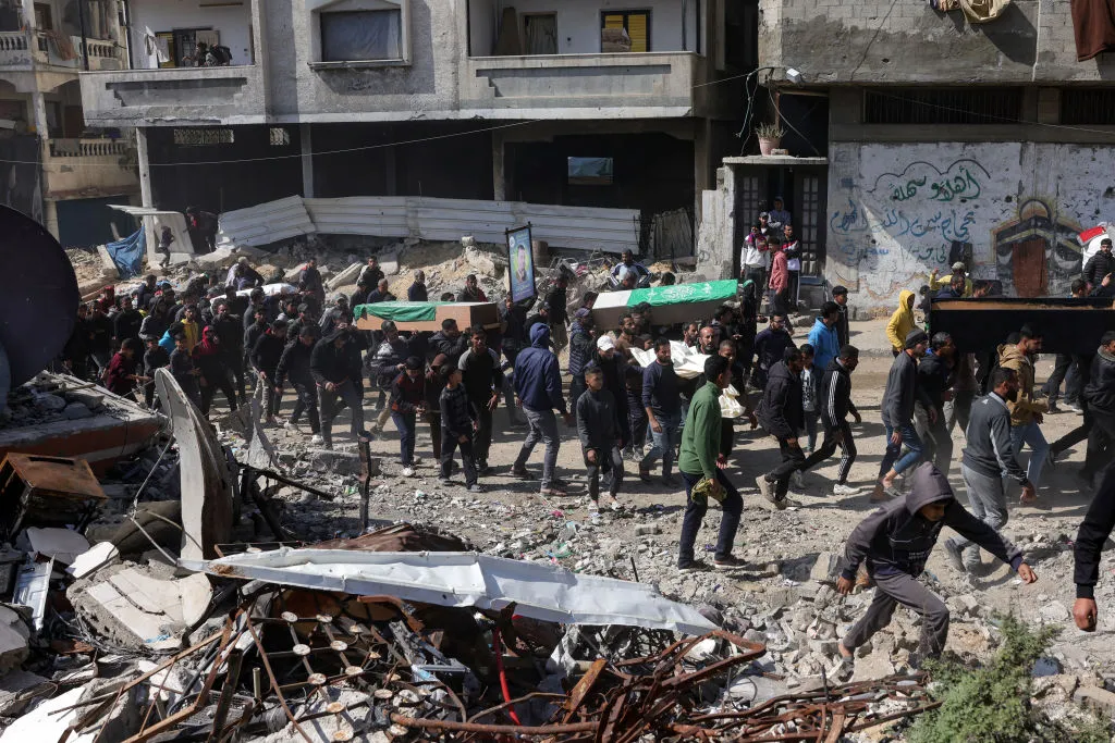 2月28日停火期間,巴勒斯坦民眾和哈馬斯武裝人員為戰爭中喪生的武裝分子和平民舉行葬禮遊行。