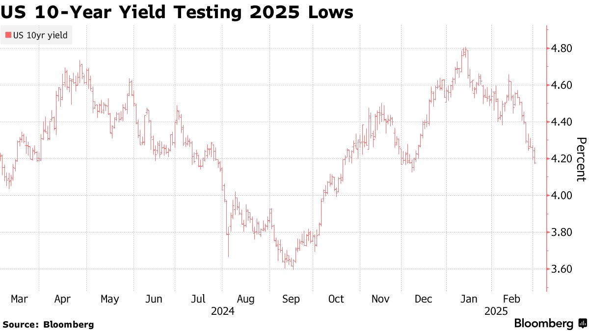 2月份,美國國債市場創下六個月來最大漲幅,而美股則出現下跌——由於消費者信心和支出指標走弱,市場對美聯儲今年晚些時候降息的押注升温。
