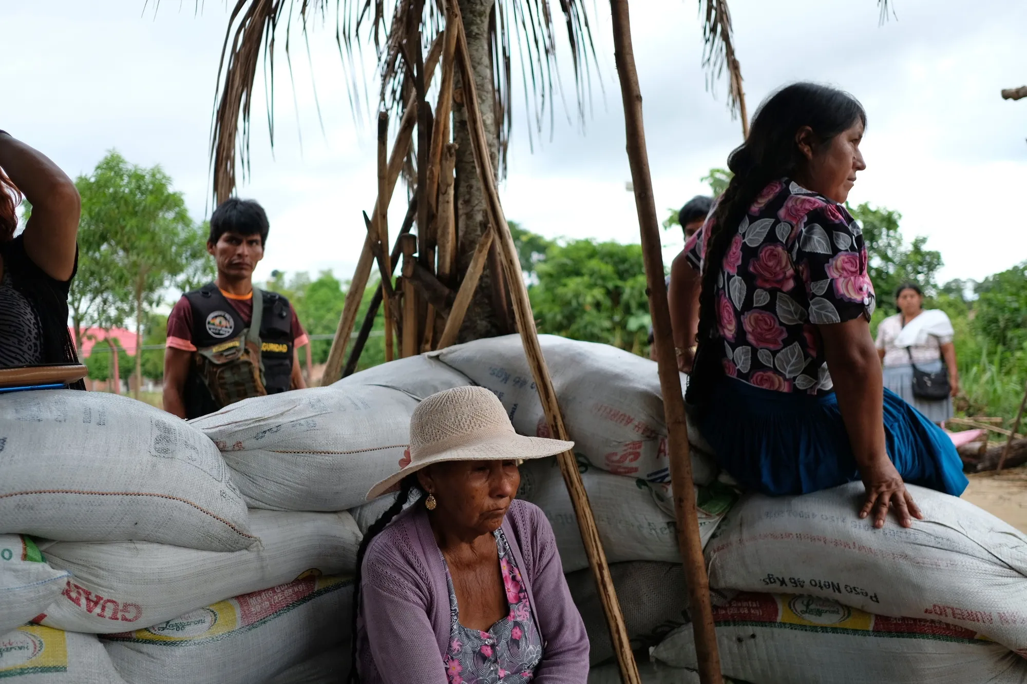 “我們需要被尊重,因為大家都説我們是毒販,但事實並非如此,”67歲的內斯托爾·加拉爾薩説道,他當時在高速公路檢查站志願擔任警衞。越過他用原木和岩石搭建的路障,便是營地外圍的第二道檢查站。那裏有幾十人把守,有人從瞭望塔上警戒,上方還掛着“人民偉大國度”總部的標牌。