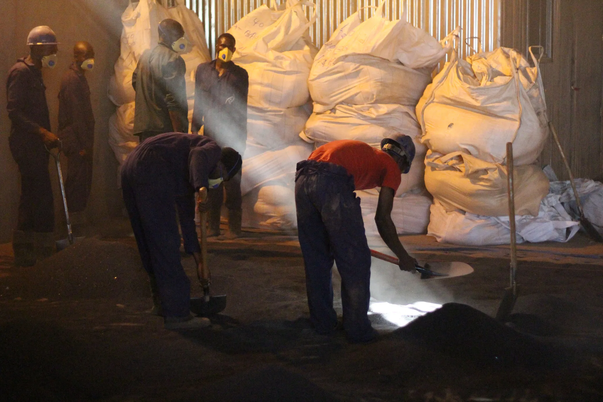 工人們在剛果盧本巴希郊外的倉庫準備鈳鉭鐵礦(俗稱鉭礦)。攝影師:邁克爾·J·卡瓦納/彭博社