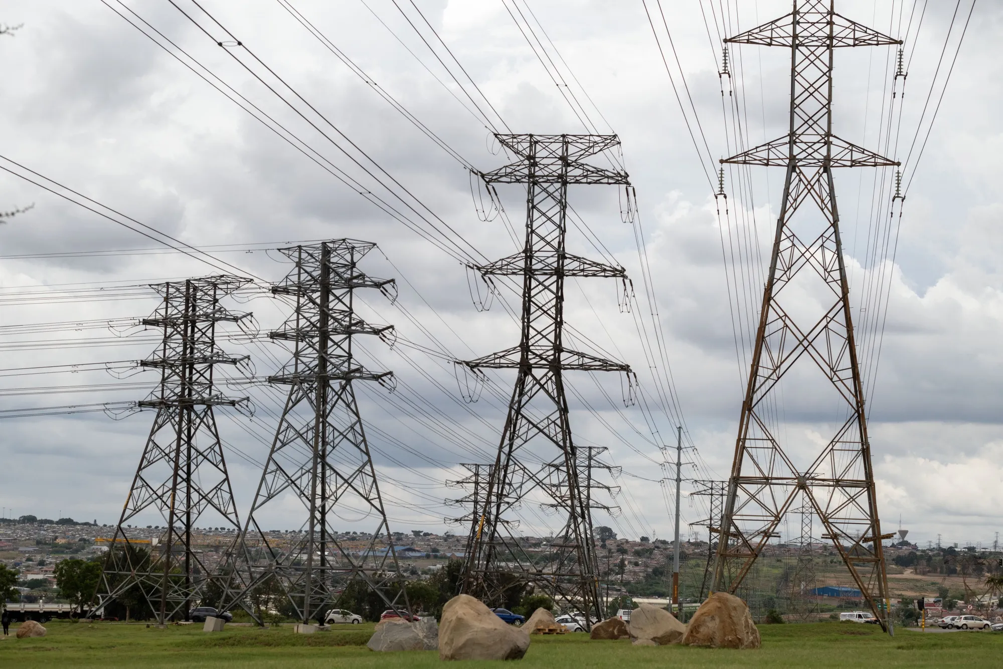 約翰內斯堡以東埃庫爾胡萊尼市轄區的輸電線路。攝影師:Leon Sadiki/Bloomberg後續影響仍在發酵,美國可能有權阻止氣候投資基金向南非支付5億美元。而來自多邊開發銀行及其他渠道的21億美元后續資金,均取決於這筆款項的到位。