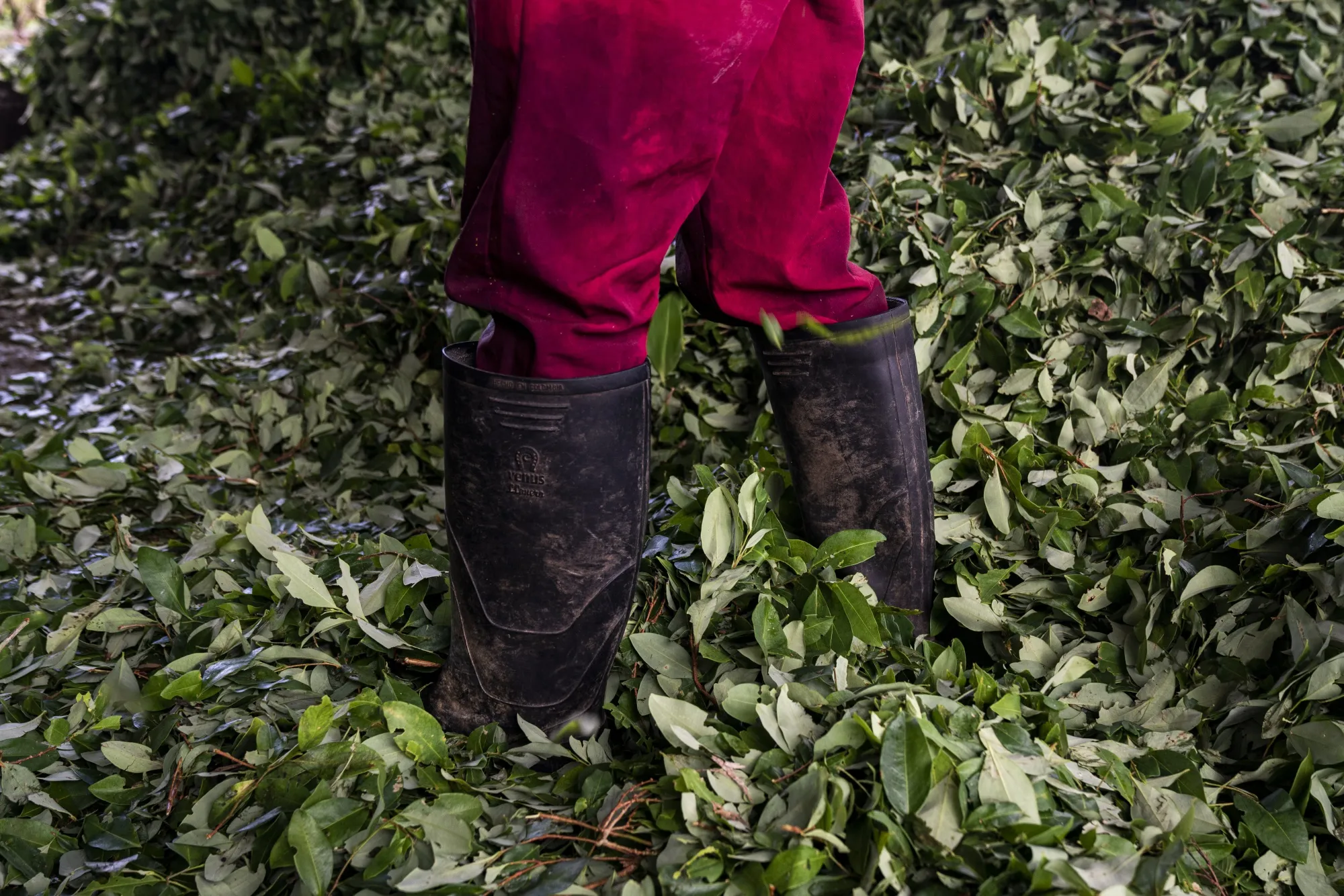 哥倫比亞聖米格爾可卡因實驗室中,一名工人站在古柯葉間。照片:Esteban Vanegas/彭博社用於製造毒品的原料古柯葉的種植面積在2023年增加了10%,達到創紀錄的25.3萬公頃。根據聯合國毒品和犯罪問題辦公室的數據,這足以生產超過2600噸毒品。
