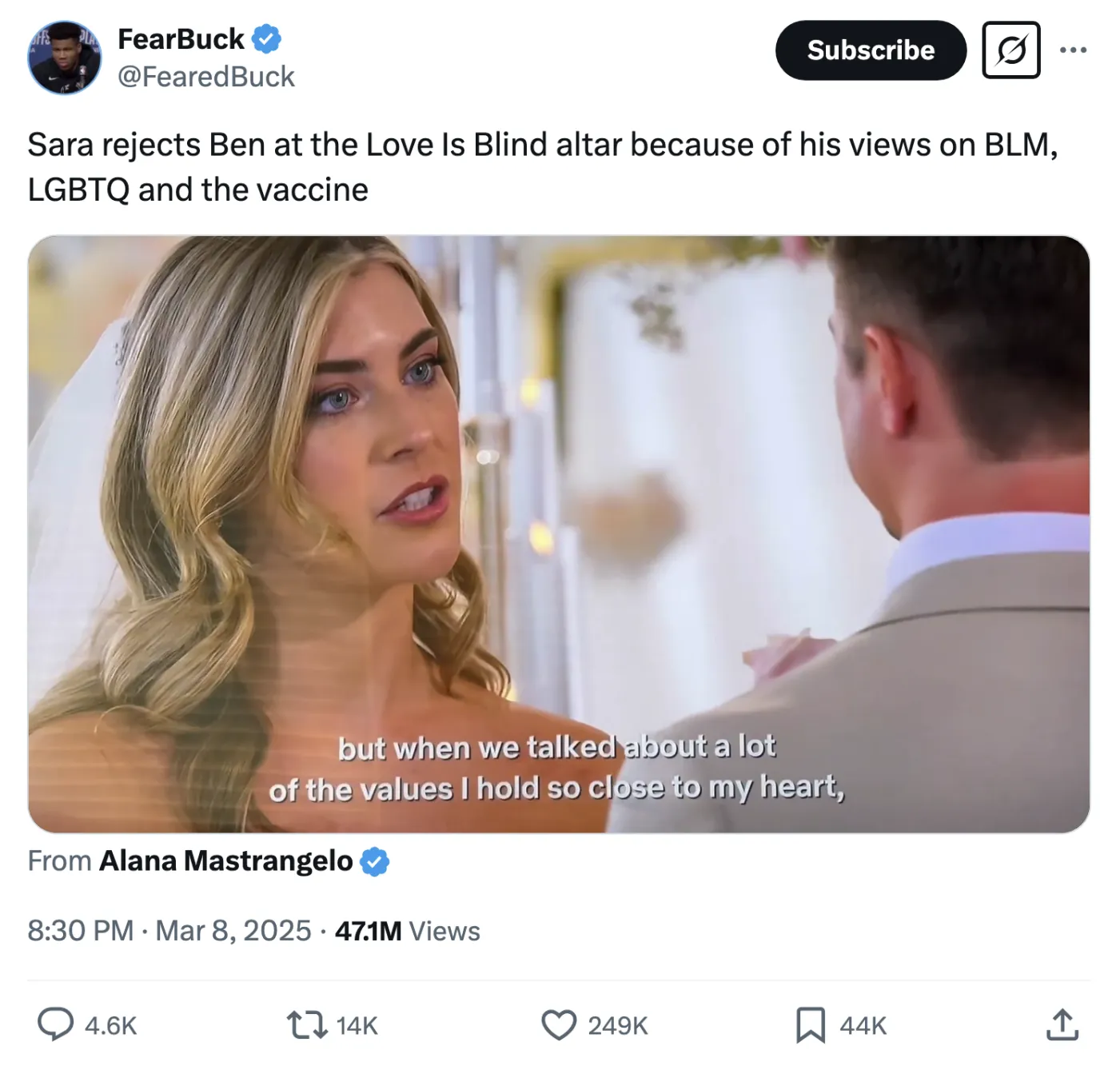 還有人看*《愛情盲選》*嗎?我承認自己已經跟不上潮流了。但兩位參賽者在婚禮聖壇分道揚鑣的這段視頻正在瘋傳,哇哦!快看: