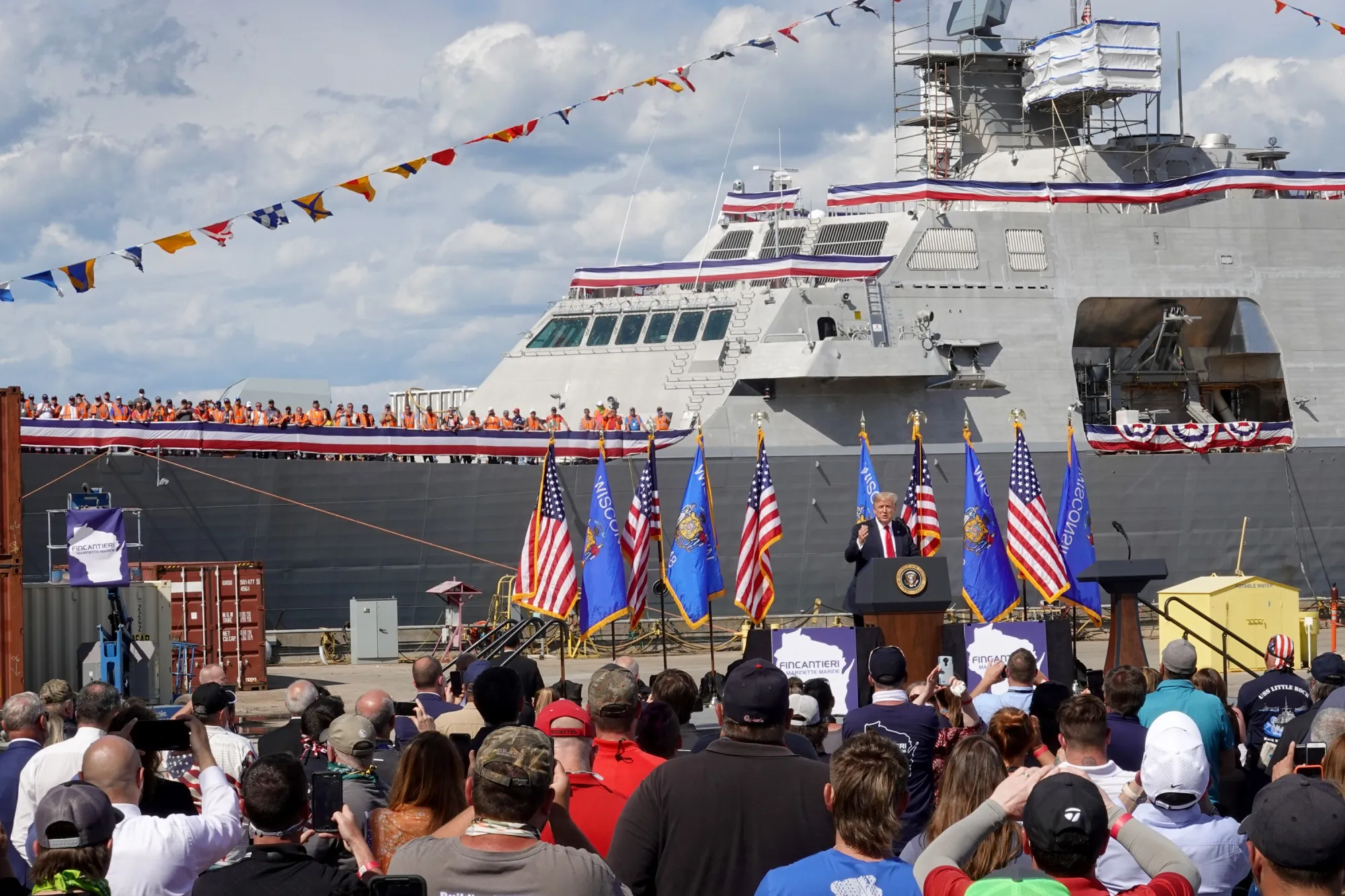 2020年,特朗普在威斯康星州馬林內特芬坎蒂尼造船廠視察時對工人發表講話。攝影師:斯科特·奧爾森/蓋蒂圖片社美國海軍代理採購主管在週二提交給眾議院聽證會的書面證詞中表示,海軍在艦艇建造方面持續未能達標,成本過高且交付進度嚴重滯後。
