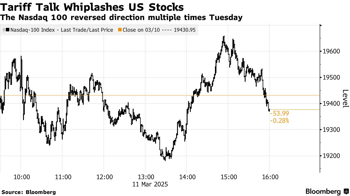 短短幾周內,由於特朗普通過全大寫社交媒體帖子和電視露面混亂地宣佈計劃,市場陷入了幾乎不間斷的波動。週二也不例外:到了下午晚些時候——隨着烏克蘭停火前景使股市跌幅收窄——特朗普表示他正在重新考慮幾小時前提出的對加拿大加徵關税的計劃。