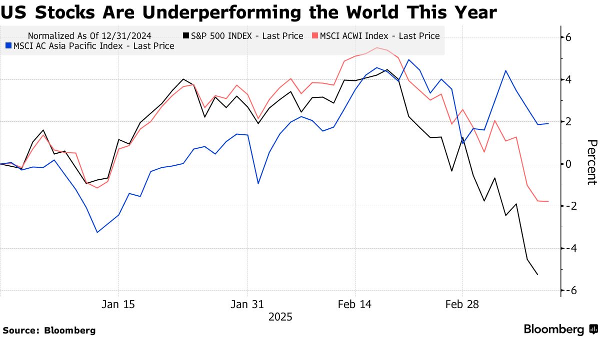 特朗普總統反覆無常的貿易政策和持續的政府裁員,隨着衰退擔憂加劇,導致消費者和企業信心指標下降。這種不確定性使標普500指數較2月高點下跌超過9%,而以科技股為主的納斯達克100指數上週更是跌入回調區域。