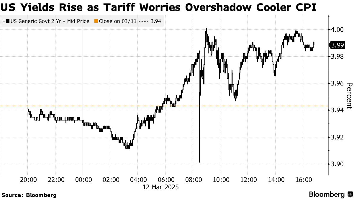 債市對通脹數據的平淡反應和缺乏明確方向,進一步表明前總統特朗普貿易政策引發的不確定性正在拖累全球市場情緒。