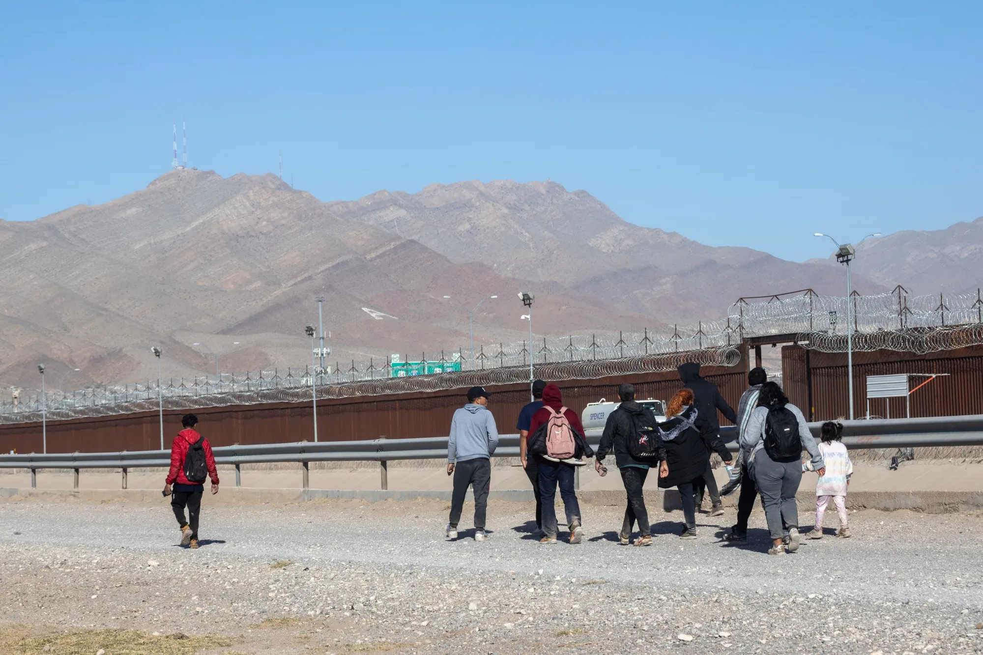 移民們沿着美國與墨西哥邊境在墨西哥華雷斯城行走。