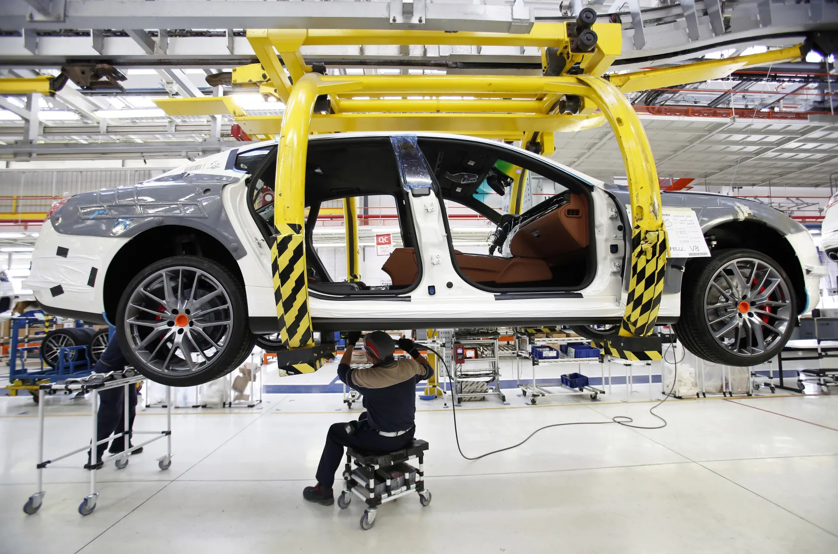 意大利都靈生產線上的瑪莎拉蒂。攝影師:Alessia Pierdomenico/彭博社斯特蘭蒂斯集團計劃將瑪莎拉蒂生產線轉移至其利用率最低的工廠之一,據知情人士透露,董事長約翰·埃爾坎正持續努力修復與意大利政府的關係。