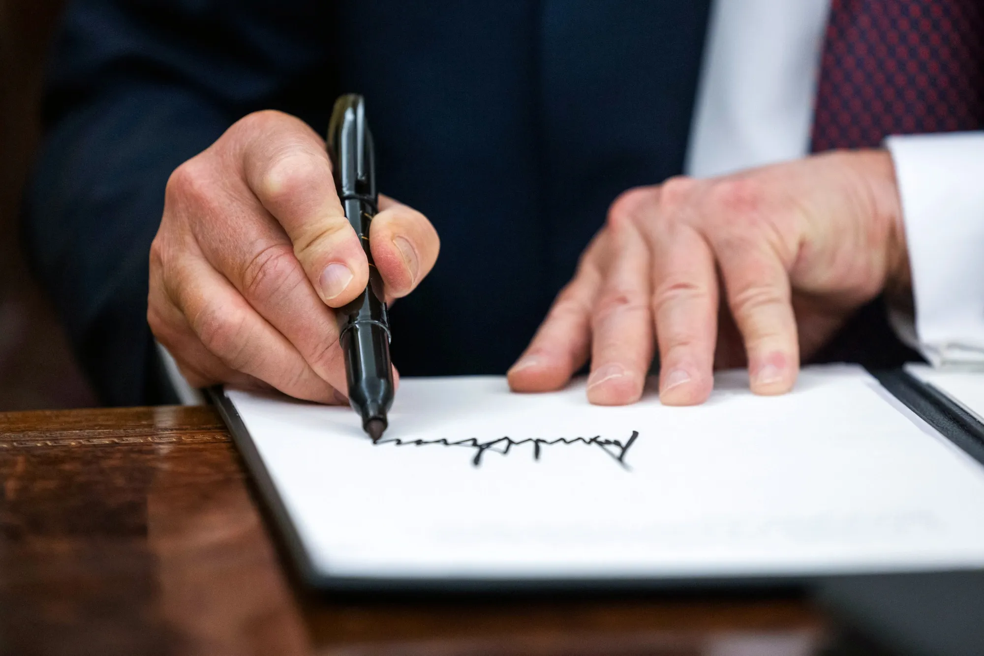 美國總統唐納德·特朗普1月20日在橢圓形辦公室簽署行政命令。