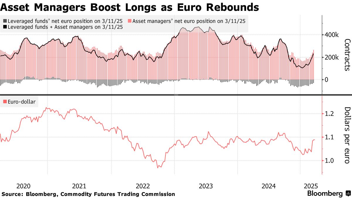 歐洲歷史性地轉向更大規模財政支出,促使資產管理公司將看漲頭寸推高至五個月高位,同時對沖基金削減了押注歐元走弱的倉位。