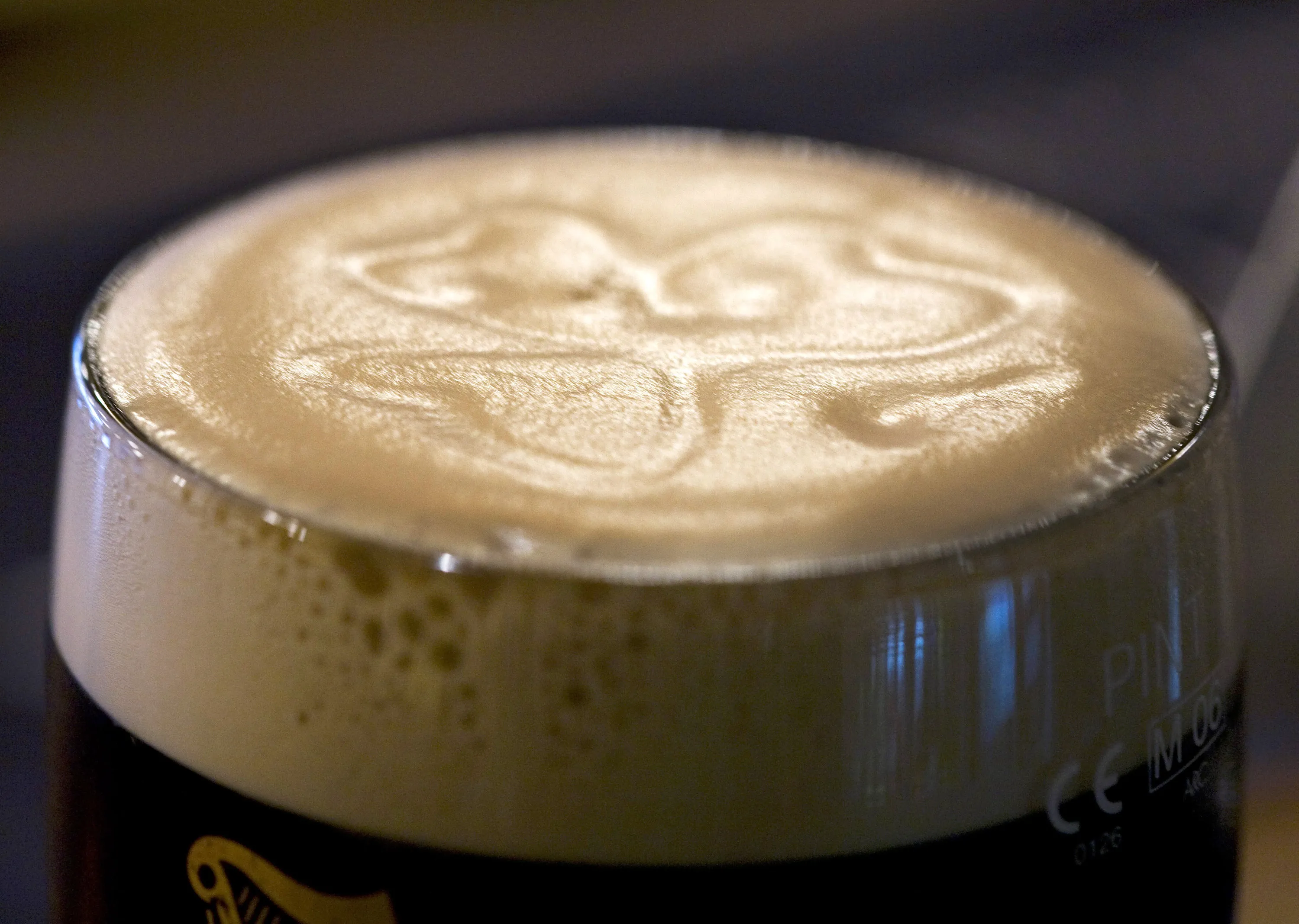 一品脱頂部雕有三葉草的健力士啤酒。[昨日答案:英國搖滾傳奇羅德·斯圖爾特花費二十年時間建造了一座156平方米的模型鐵路,包含摩天大樓和高峯時段交通場景。]