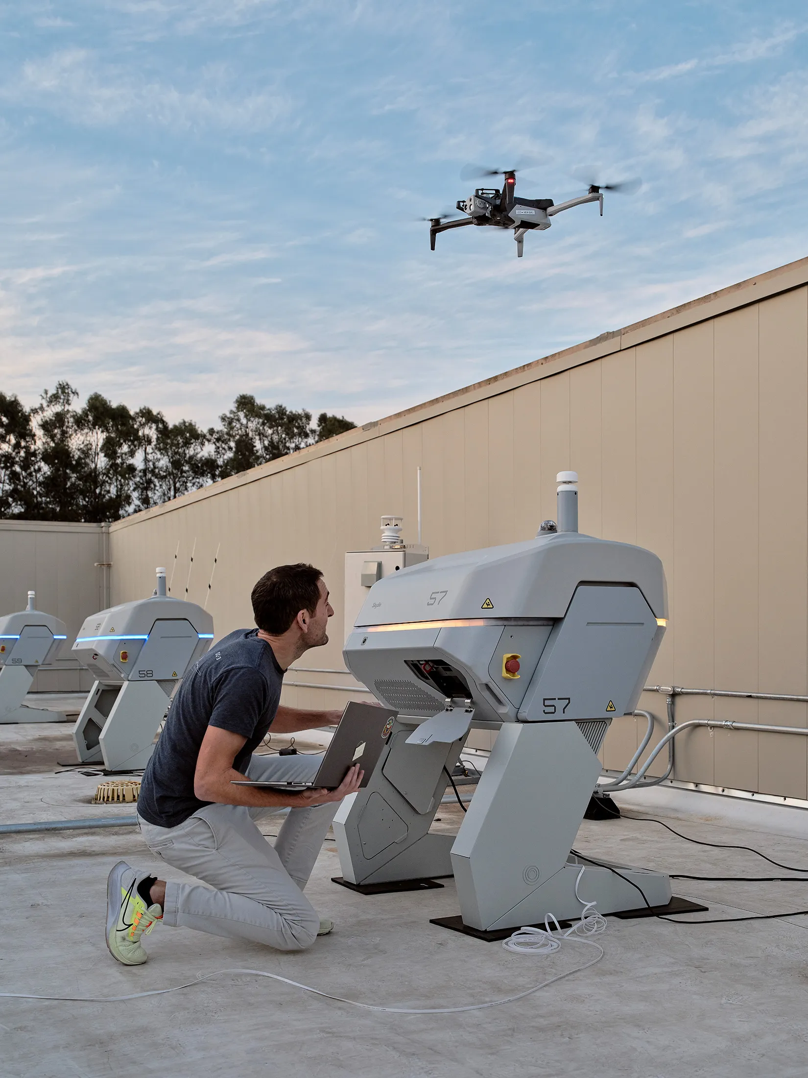 Skydio目前自豪地擁有650家公共安全機構客户,推動其實現九位數的年收入(“增長迅速”)。在2024年9月底於加州聖克魯斯市郊度假村舉行的最新用户大會上,Bry發佈了X10的升級版本,該機型起價12,000美元,最高可達兩倍價格。然而最重大的發佈是Dock——一個兼具機庫與發射台功能的設備,外形酷似太空時代的天井烤架。目前大多數無人機仍需手動起飛。配備電池充電器和可伸縮防雨罩的Dock承諾將改變這一現狀。在紐約市、俄克拉荷馬城和拉斯維加斯的試點項目中,安裝在警察分局和消防站屋頂的Dock使Skydio無人機能在接到911報警後數秒內起飛,在人類救援人員到達前評估潛在危險情況。(Skydio並非唯一預見這一未來的公司,大疆等其他無人機廠商也銷售類似產品。)