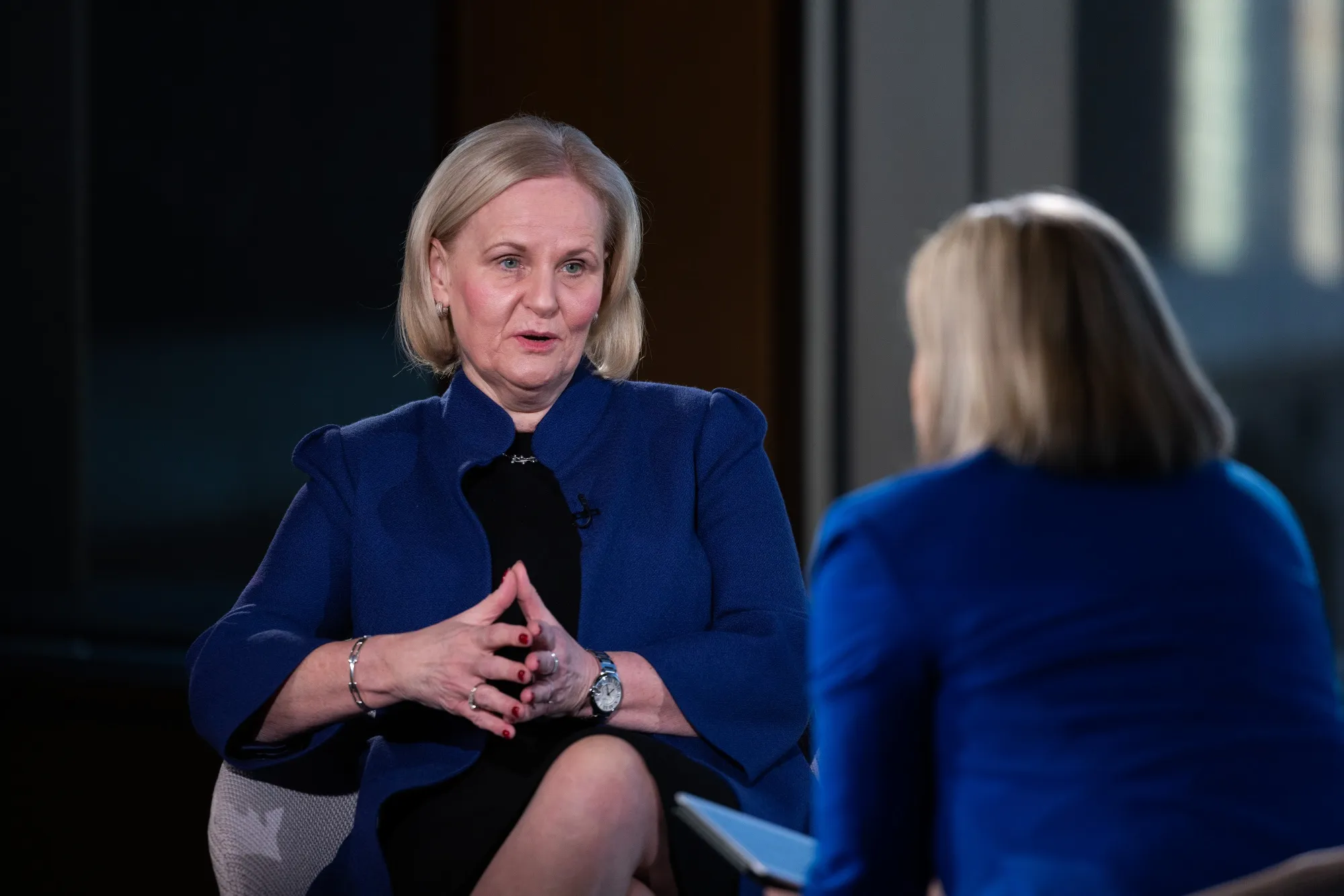 3月18日,阿曼達·布蘭克在倫敦接受彭博電視台採訪。攝影師:克里斯·拉特克利夫/彭博社英傑華集團首席執行官阿曼達·布蘭克表示,英國養老基金應將超過5%的資產投資於本土。目前英國政府正對資產管理機構施壓,要求其增加對國內投資的承諾。