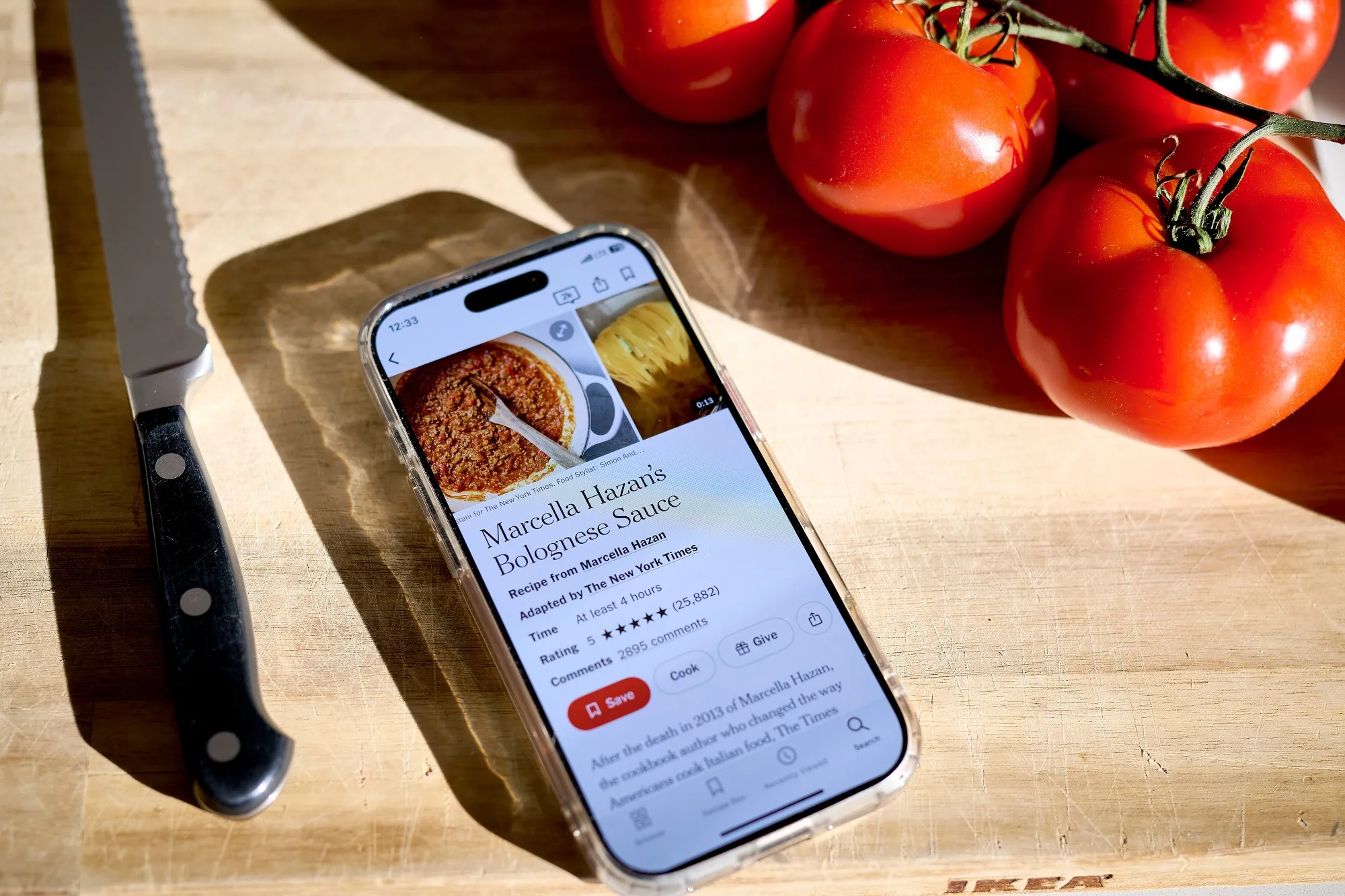 目前位居蘋果應用商店最佳食譜應用榜首的《紐約時報烹飪》應用,去年開始加入了短循環的垂直視頻。這些嵌入精選食譜或出現在應用首頁的片段,通常展示一雙完成烹飪過程每一步的手,使學習如何切菜更容易。