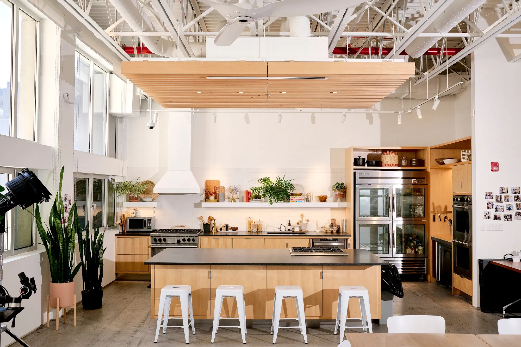 位於紐約的《紐約時報》烹飪工作室。攝影師:Gabby Jones/彭博社烹飪視頻通常在曼哈頓地獄廚房社區一間寬敞的攝影棚廚房拍攝,距離時報中城總部約20分鐘步行路程。儲藏架上擺滿了各種能想象到的香料,還有成排的玻璃杯和成堆的盤子。雖然實際廚房區域會有細微變化,比如冬季擺放冬青枝,或是水槽上方架子上新增一本《紐約時報》廚師的烹飪書,但整體風格始終保持着簡約親和的設計理念。