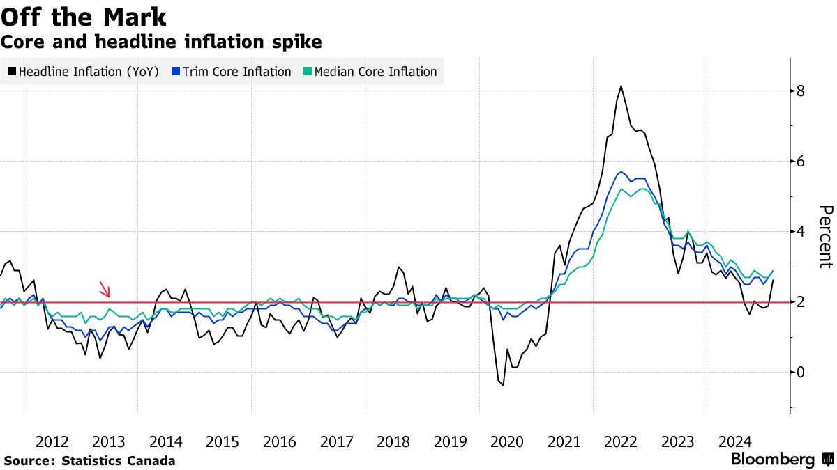 儘管整體數據連續第二次加速增長在預料之中,但價格上漲的速度仍可能令加拿大央行的政策制定者感到意外,他們上週連續第七次會議降息,因為唐納德·特朗普的關税威脅阻礙了企業和消費者支出。