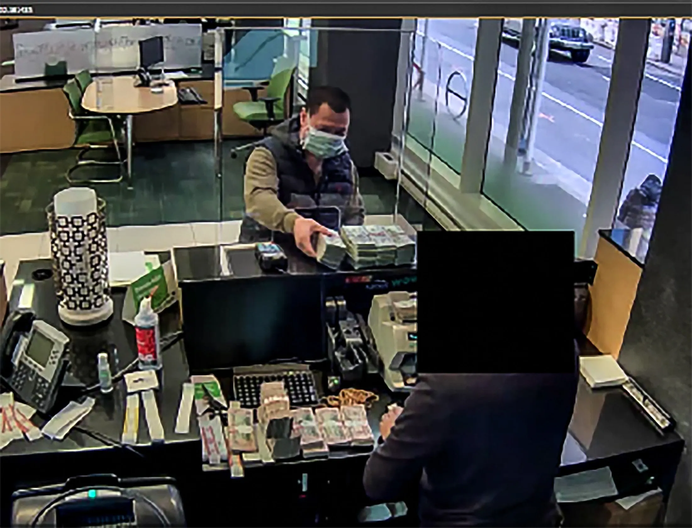 一次,銀行監控錄像中出現了Sze的身影——他身材敦實,身着綠色毛衣和黑色羽絨背心——正在櫃枱前將成堆現金存入一個賬户,而該賬户的表面持有人卻不見蹤影。另一次存款時,他僅提供了手機拍攝的賬户持有人身份證照片。還有一次,曼哈頓中城分行的攝像頭拍到他清點37.2萬美元現金,而名義上的賬户主人卻在幾英尺外的扶手椅上休息。相關貨幣交易報告很少提及Sze,2018年至2021年初,他通過五州的道明銀行分行洗錢4.74億美元,同時規避了執法審查。