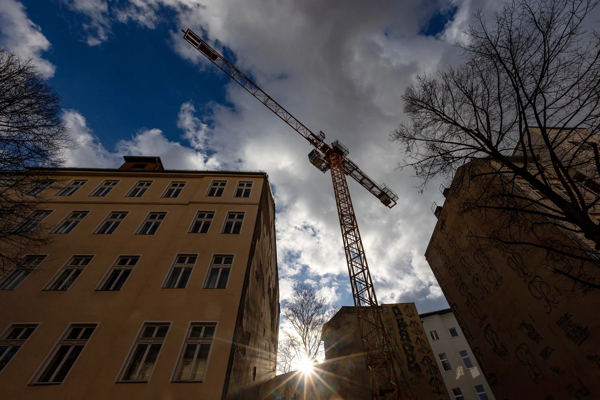 柏林克羅伊茨貝格區公寓樓旁的塔式起重機。攝影師:克里斯蒂安·博奇/彭博社歐洲最大房東Vonovia SE表示,德國具有里程碑意義的支出計劃將對該國受創的住房市場產生複雜影響。