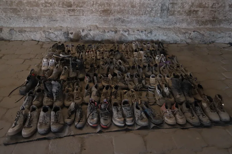 伊薩圭雷牧場1300餘件個人物品中發現的鞋子。攝影:哈利斯科州檢察官辦公室地方政府聲稱致力於尋找失蹤者(僅哈利斯科州就有約1.5萬人,全國超12萬人),但質疑官方説辭絕非多慮:這個營地的罪惡本質得以曝光,全賴那些穿梭墨西哥尋找失蹤親人的堅韌民間組織(西語稱"buscadores")。事實上,地方檢察院與國民警衞隊去年九月就已控制該地點,但出於某種原因——毫不意外!——他們並未展開調查。