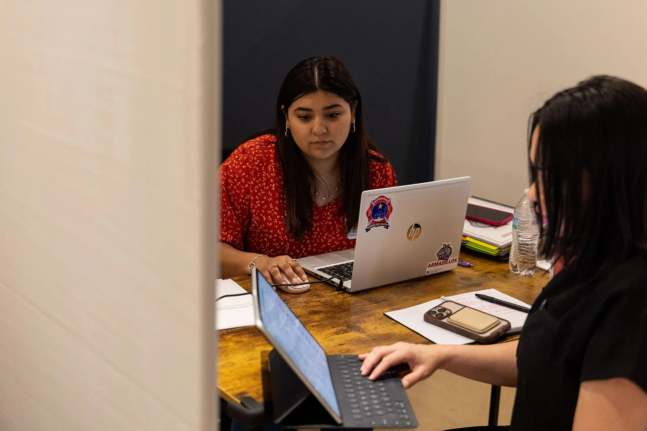 招生顧問格雷西·克洛斯娜在聖安東尼奧學院學生中心為護理專業學生梅麗莎·洛埃拉(右)提供選課指導。攝影師:凱莉·格林利為《彭博商業週刊》拍攝隨後,該學區將重點轉向專業重組,將學術項目整合為六大院系,以匹配聖安東尼奧就業市場需求。自2016年起,學生可按行業、興趣領域、職業類別甚至具體崗位瀏覽課程體系,並查看分學期設置的必修課程。多數項目採用"可疊加"學分制,學生從基礎證書起步,最終可獲得副學士學位。入學時,學生選定研究領域後需參加新生指導並面見學術顧問。