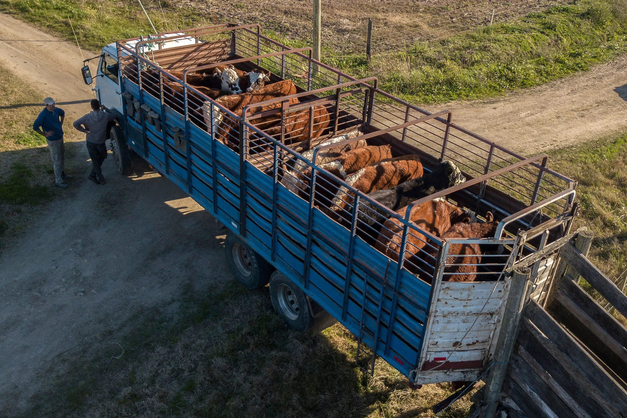 烏拉圭卡內洛內斯省,裝載待運往屠宰場的牲畜卡車。照片:Pablo Porciuncula/AFP去年十月,拉臘特集團(Grupo Larrarte)因一部揭露性電視紀錄片曝光投資者指控其欺詐的證詞,成為首家進入債權人競標程序的企業。據《國家報》援引法院指定託管人提交的報告,該公司資產與負債間的赤字達1230萬美元。集團創始人海羅·拉臘特(Jairo Larrarte)通過律師發送的電子郵件表示,希望儘快向債權人提交重組計劃。