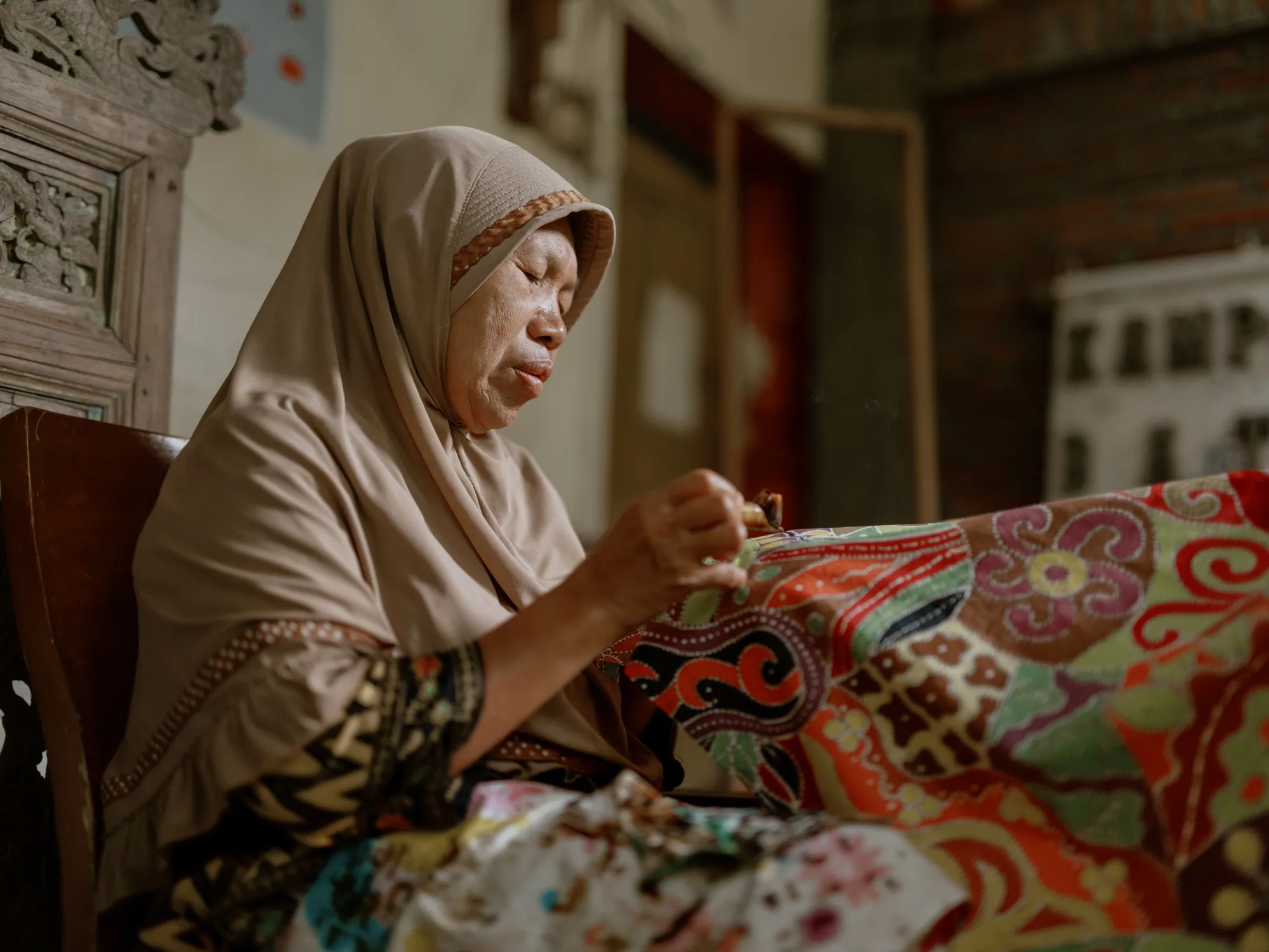 印尼梭羅市拉威揚地區,一位蠟染藝匠正在創作。攝影師:穆罕默德·法德利/彭博社