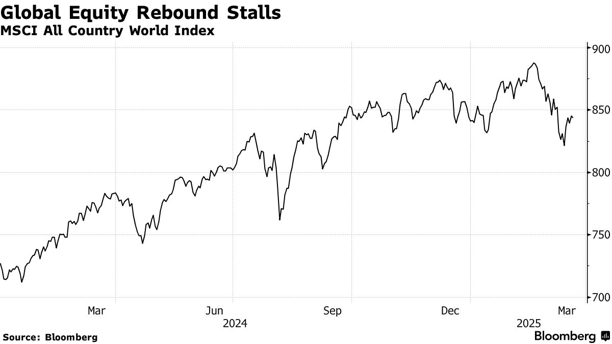 這種疲軟走勢使本週早些時候全球股市初現的反彈停滯,突顯出投資者在美國加徵關税前的緊張情緒。本週早些時候,特朗普總統表示,廣泛的互惠關税和某些額外的特定行業關税將於4月2日生效。