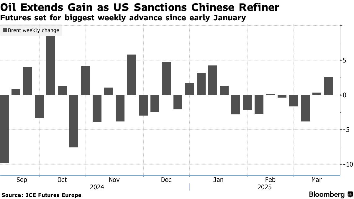 在美國數據提振市場對最大石油消費國需求的樂觀情緒後,原油價格有望創下1月中旬以來最大單週漲幅。但漲勢受到全球貿易戰升級及下月OPEC+可能增產等利空因素的限制。