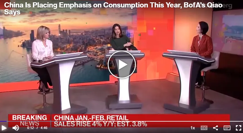 觀看視頻:美國銀行Helen Qiao稱零售數據處於"良好舒適區間"。政策制定者提振低迷消費支出的一個關鍵舉措是針對多種商品的以舊換新計劃。最新數據顯示該方案正在見效,從傢俱到家電的各類商品銷售額均有所上升。