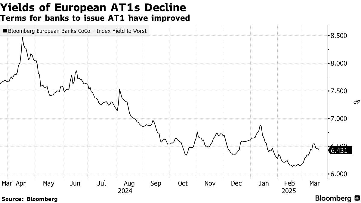 旨在銀行陷入困境時吸收損失的AT1債券銷售年初曾以創紀錄速度進行,發行方利用利差優勢發行新票據。近年來AT1市場持續火爆,投資者熱衷承擔更高風險債務,歐洲銀行也因利率上升實現了創紀錄利潤。