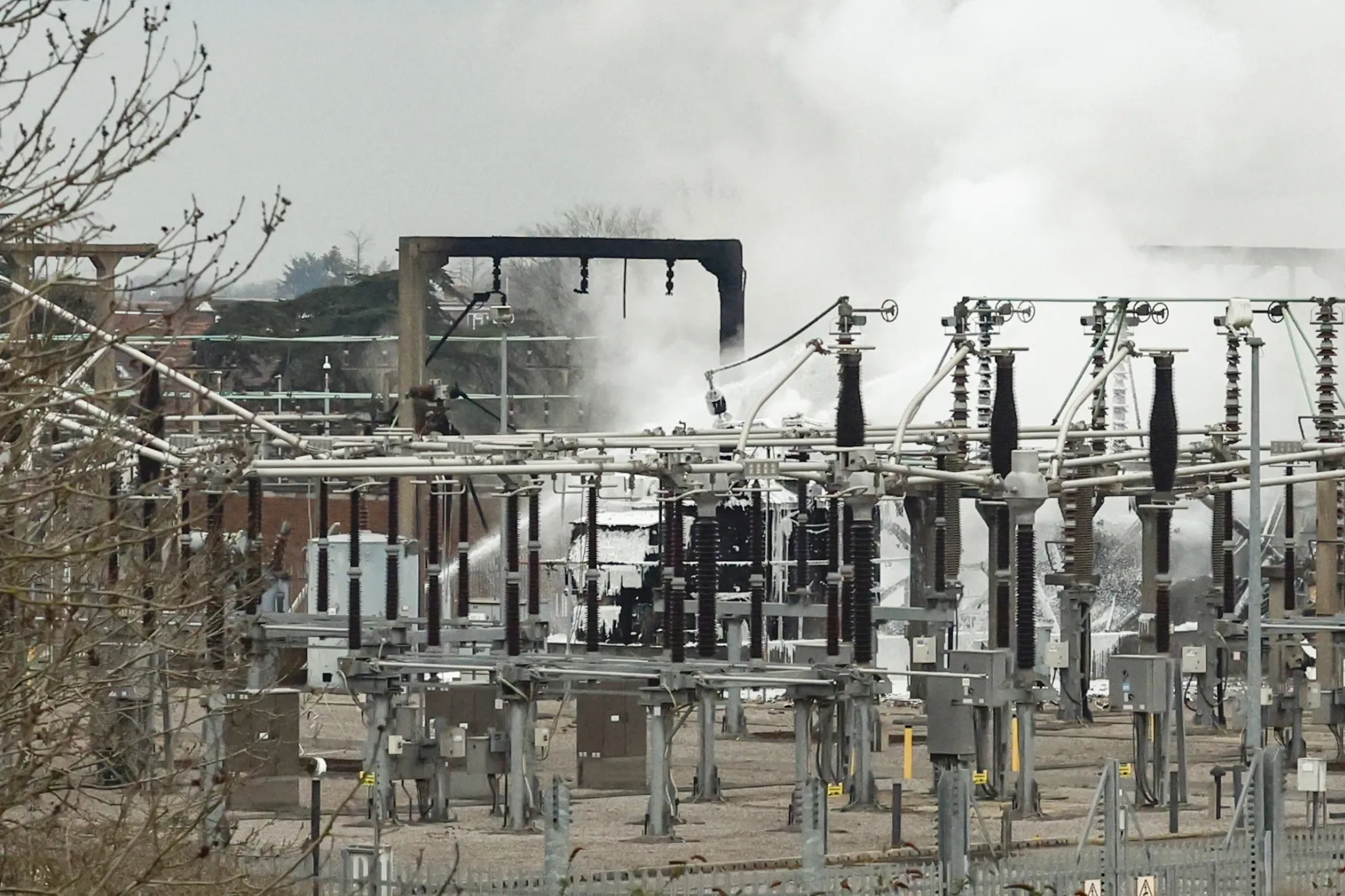 3月21日,消防員正在海耶斯撲滅希思羅機場供電變電站的火災殘骸。攝影師:Benjamin Cremel/AFP/Getty Images火災發生於希思羅以北的海耶斯變電站,臨近午夜時分導致局部斷電。機場方表示,週五凌晨1:30左右關閉後將全天停運。