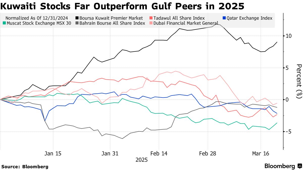 科威特股市今年表現優於海灣地區同行,銀行股領漲——布比延銀行、布爾甘銀行和瓦爾巴銀行均上漲17%或更多。