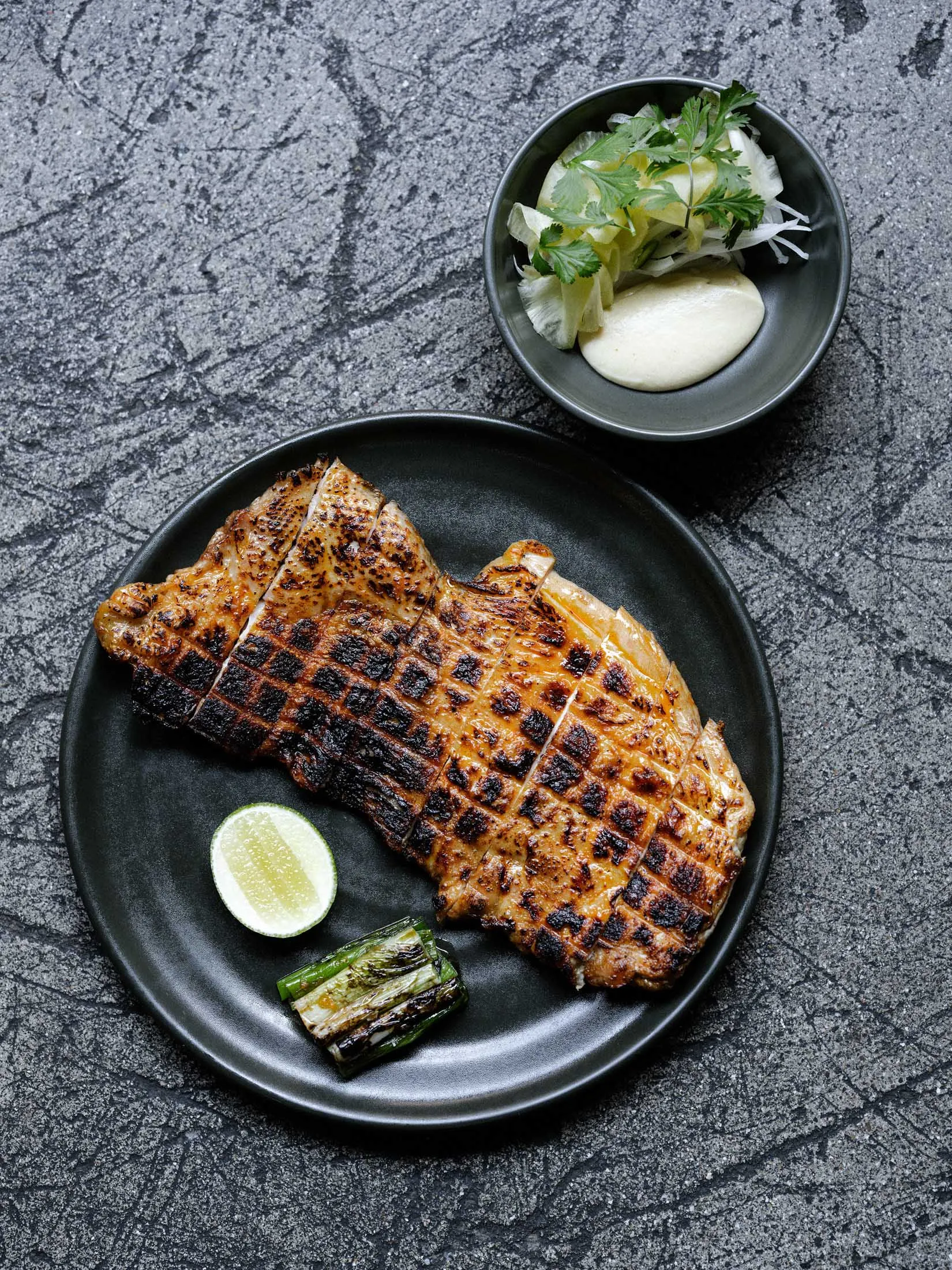 主廚恩裏克·奧爾維拉在洛杉磯的Damian餐廳為他的pollito al pastor配菠蘿黃油。來源:Damian複合黃油製作起來非常簡單——基本上就是把所有東西混合在一起。關鍵是確保基底足夠柔軟,能夠融入從橄欖和辣椒到水果和味噌等調味料的各種成分。這種適應性允許非傳統的選擇,比如主廚恩裏克·奧爾維拉在他位於洛杉磯的墨西哥餐廳Damian為他的pollito al pastor(甜辣雞)配的菠蘿黃油。在新奧爾良的34餐廳與酒吧,E.J. 拉加斯和他著名的父親埃默里爾為麪包服務提供了一種自燻黃油和一種注入蜂蜜和皮裏皮裏辣椒的黃油。在華盛頓,主廚法比奧·特拉博基為Sfoglina的hangar牛排製作了一種燻甜洋葱黃油。