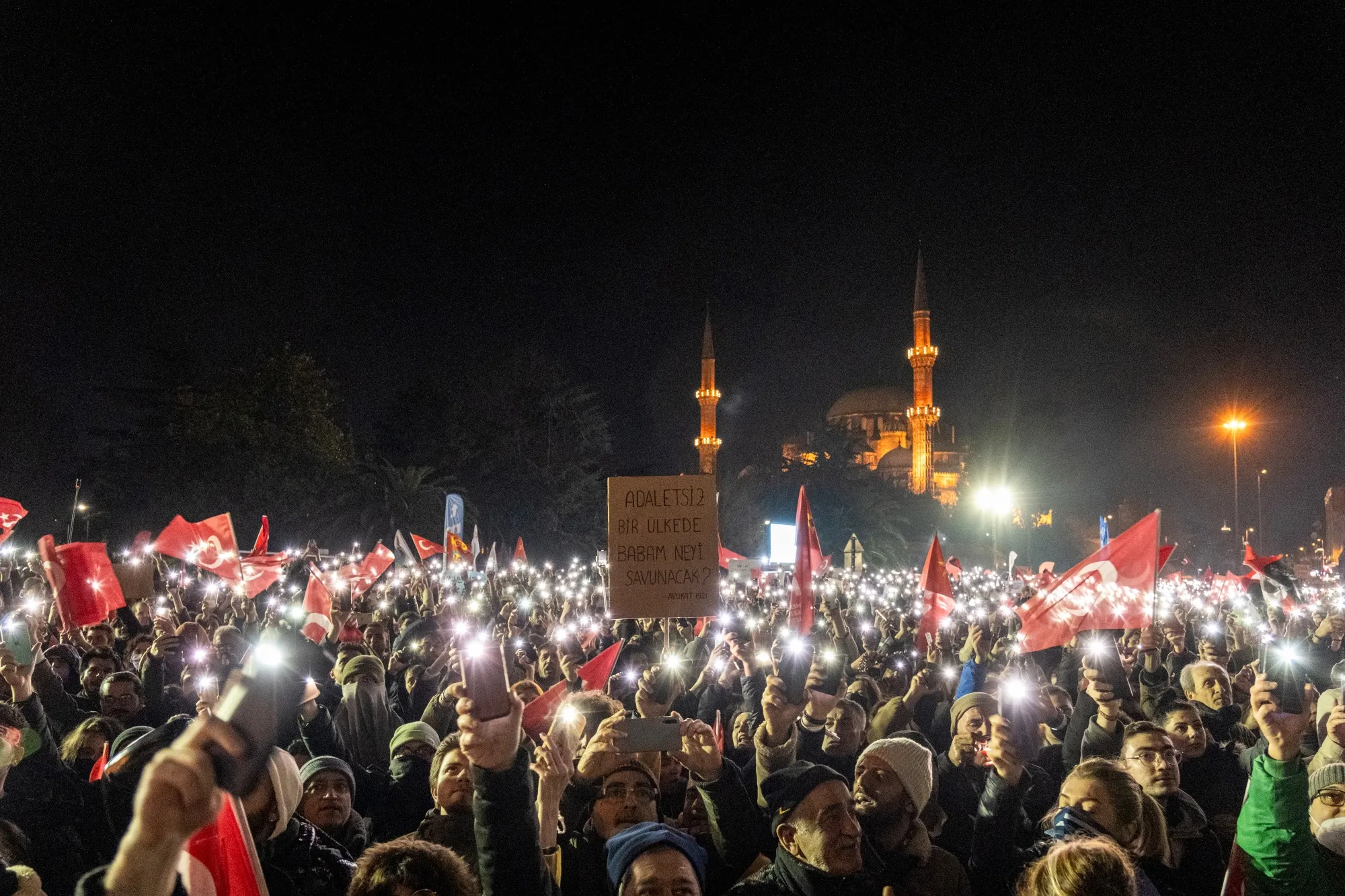 昨日,土耳其伊斯坦布爾市長埃克雷姆·伊馬姆奧盧被拘留後,抗議者在示威活動中。